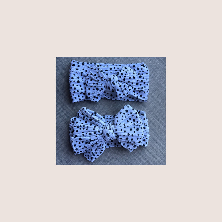 Pictured below is our ‘Dotty’ bow available in two bow sizes, small (top) and large (bottom).